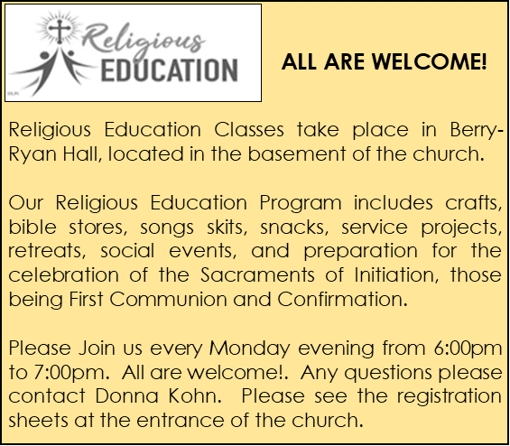 SICK & COMMUNION CALLS: We are happy to visit the sick. Notify the Rectory.